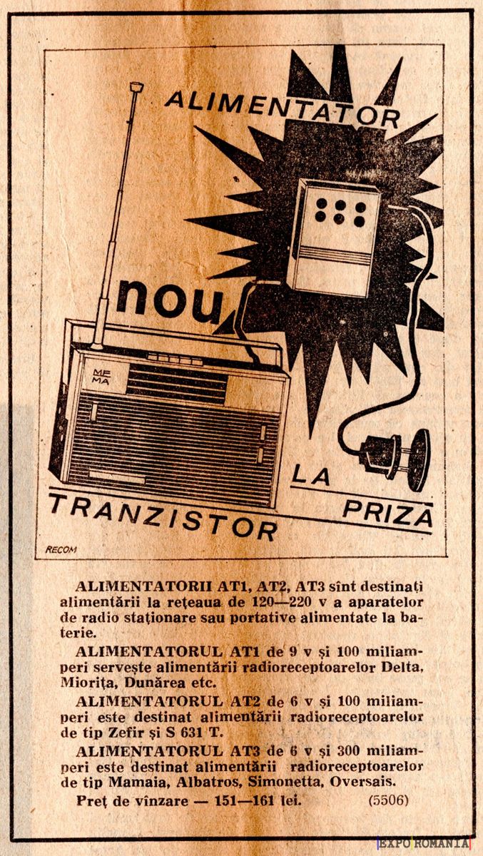 ALIMENTATORUL ATI de 9 V si 100 miliamperi servește alimentării radioreceptoarelor Delta, Moitaru, Dunărele etc.