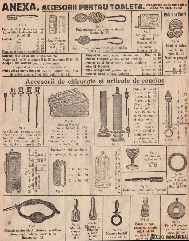 ANEXA. ACCESORII PENTRU TOALETA. Preţurile sunt valabile data de 13 Oct. 1930