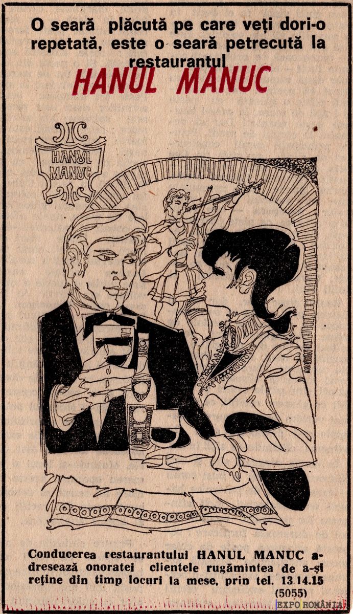 Conducerea restaurantului HANUL MĂNUC a dresat-onorat clientele rugămite de a-și reține din timp locurile la mese, prin tel. 13.14.15 (5055)