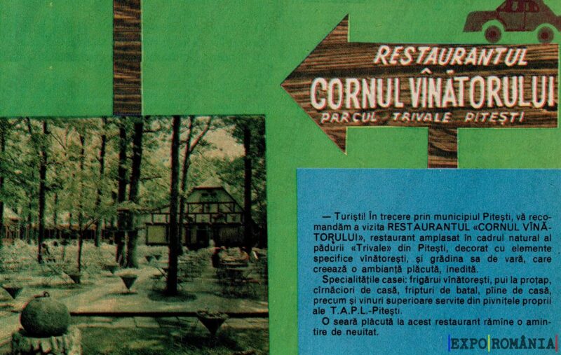 — Turiști! În trecere prin municipiul Pitești, vă recomandăm să vizitați RESTAURANTUL CORNUL VINAȚORULUI, restaurant amplasat în cadru natural al pădurii „Trivale” din Pitești, decorat cu elemente specifice vânătoarei, ce îngrijesc de stilul de viață care creează o ambianță plăcută, rustică.