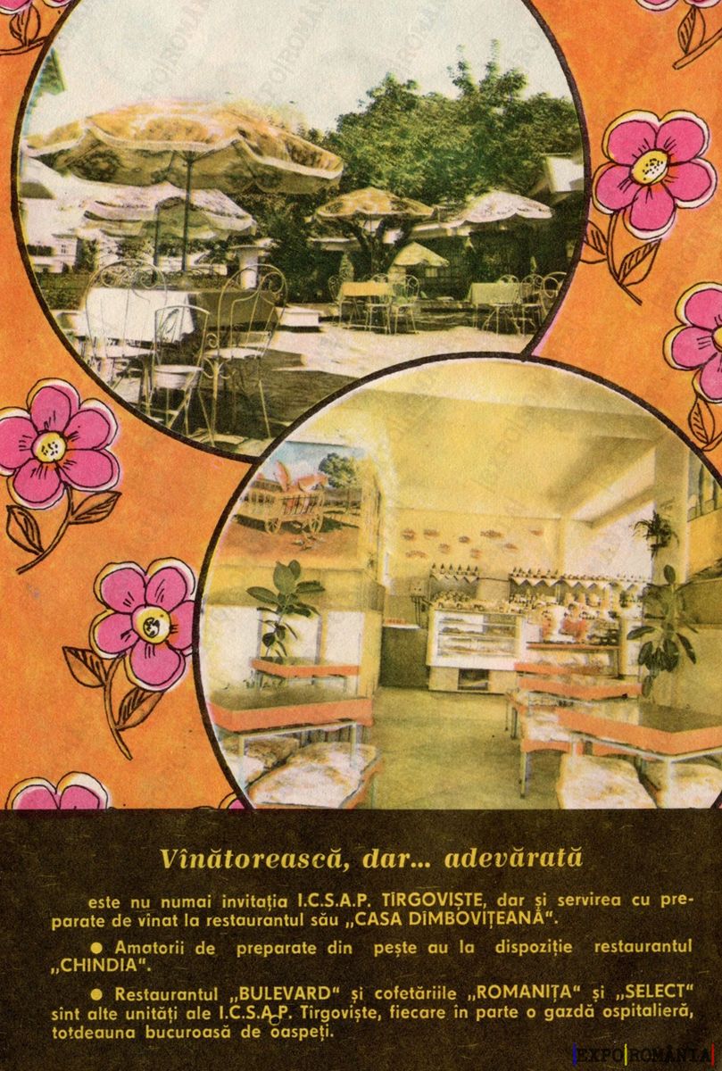 Restaurantul „BULEVARD” și cofetăria „ROMANITĂ” și „SELECT” sunt și ele incluse în I.C.S.A.P. Târgoviște, fiecare în parte având ospitalitate, lounge, bucuria de a spera.