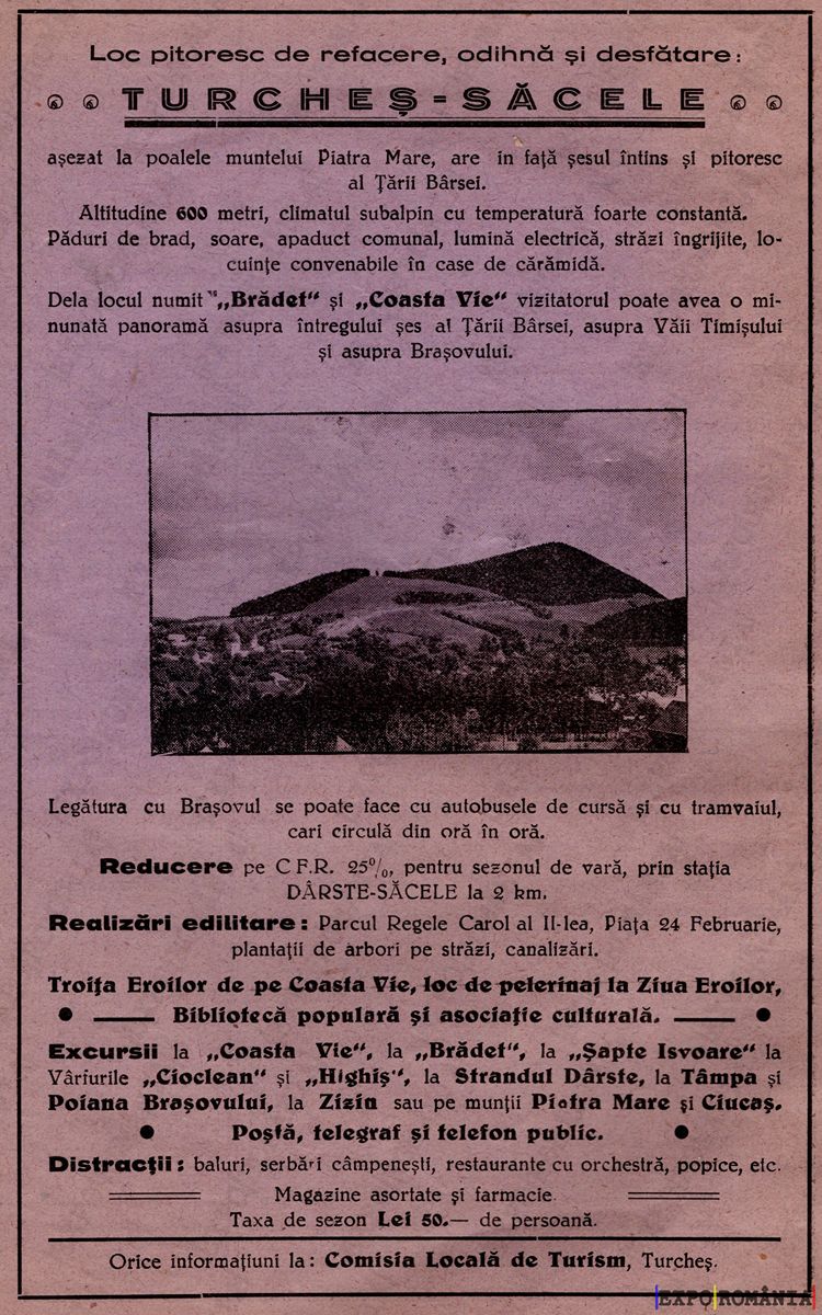 Excursii la: Făgăraș, Râșnov, Bran, „Zărna Isvorăre”, „Cozia”, „Muntii Piatra Maré”, și alte. Timpă.