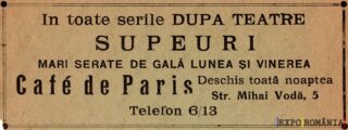 Reclamă – Domeniul HORECA – Cafenea Cafe De Paris – București